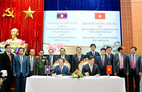 | Signature de l'accord de coopération de 2015 entre deux provinces de Quảng Nam et Sékong. |