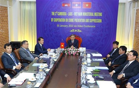 La conférence virtuelle a réuni le ministre vietnamien de la Police, Tô Lâm, le vice-Premier ministre et ministre cambodgien de l’Intérieur, Samdech Krolahom Sar Kheng, et le ministre laotien de la Police, Vilay Lakhamhong.