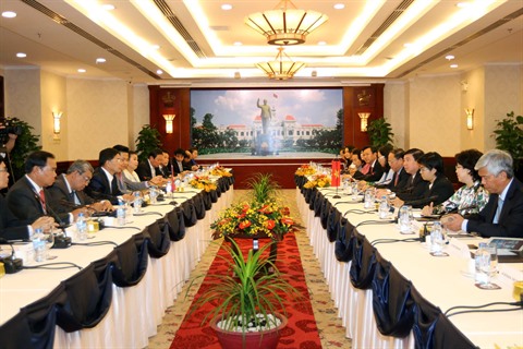 | Entretien entre les dirigeants de Hô Chi Minh-Ville et de Vientiane, le 29 mars dans la mégapole du Sud. |