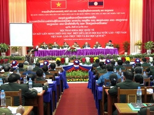 Portant sur le thème "La solidarité et l’alliance spéciales dans le combat des armées des deux pays : réalité et leçons dégagées", ce colloque a vu la présence du général Douangchay Phichit, ministre lao de la Défense, de Chueang Sombounkhan, président du Comité de la propagande et de la formation du Comité central du Parti populaire révolutionnaire du Laos, et du général Nguyên Thành Cung, vice-ministre vietnamien de la Défense.