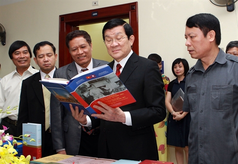 | Le président Truong Tân Sang (2e à droite), lors de la cérémonie de bilan et de sortie de l'ouvrage Histoire des relations particulières Vietnam-Laos, Laos-Vietnam (1930-2007), tenue le 19 octobre à Hanoi. |