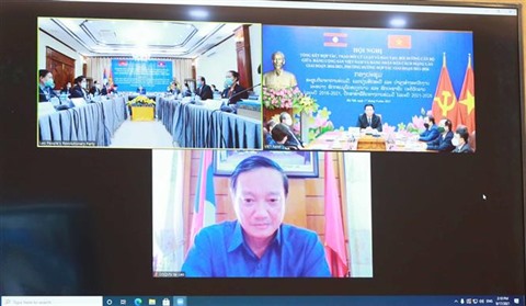 La conférence virtuelle entre le Parti communiste du Vietnam (PCV) et le Parti populaire révolutionnaire lao (PPRL) a été coprésidée par Nguyên Xuân Thang, membre du Bureau politique, directeur de l’Académie politique nationale Hô Chi Minh, président du Conseil théorique central du PCV ; et Khamphanh Pheuyavong, secrétaire du Comité central, président de la Commission de sensibilisation et d’entraînement du Comité central, président du Conseil théorique central du PPRL.