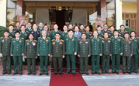 | Photo de famille entre les délégués de deux ministères de la Défense du Vietnam et du Laos |