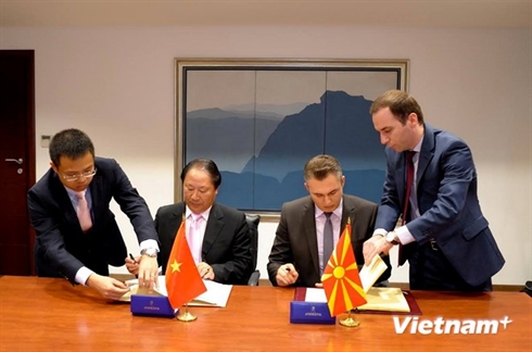 | Cérémonie de signature de l'accord de promotion du commerce entre le Vietnam et la Macédoine, le 15 octobre à Skopje (capitale de la République de Macédoine). |