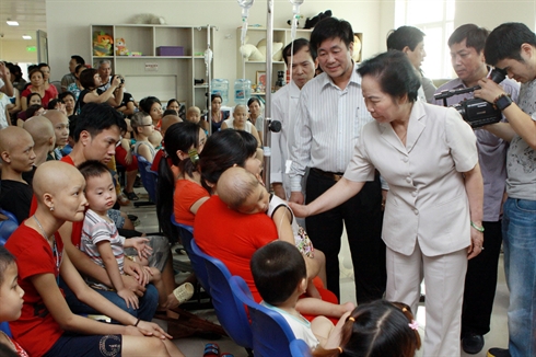 | La vice-présidente de la République, Nguyên Thi Doan, est allée offrir des cadeaux aux enfants atteints de cancer traités à l’antenne de Tân Triêu de l’hôpital |