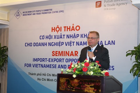 Piotr Harasimowicz, représentant en chef de l'Agence polonaise de promotion du commerce et de l'investissement à Hô Chi Minh-Ville, a déclaré que les échanges bilatéraux entre le Vietnam et la Pologne n'étaient pas élevés, car le fret entre les deux pays devait passer par des pays intermédiaires. Actuellement, il n’y a pas encore d’accord de libre-échange entre le Vietnam et d’autres pays européens ni une grande entente entre les entreprises des deux pays.