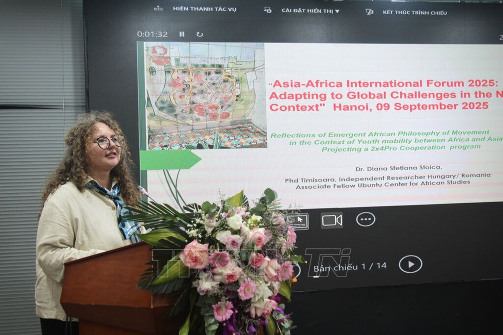 | Professeur associé et Docteur Ta Minh Tuân, prenant la parole au Forum international Asie - Afrique 2025, le 9 septembre. |