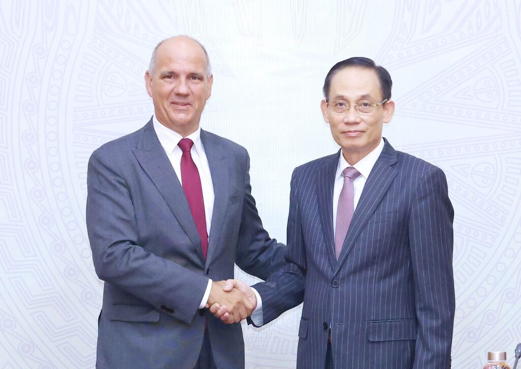 | Entretien entre Lê Hoài Trung et Paulo Raimundo, le 14 août à Hanoï. |