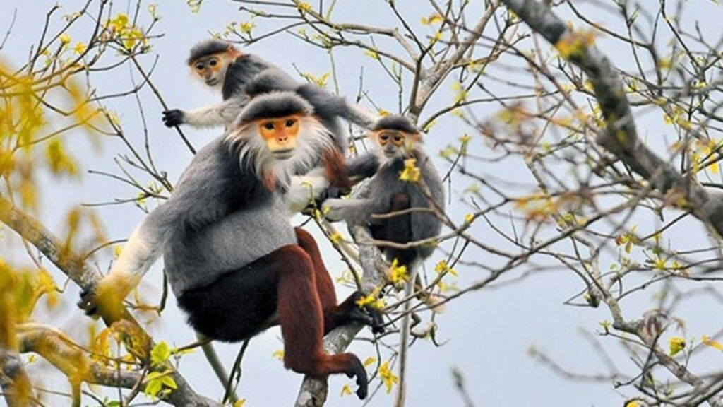 | Des doucs à pattes brunes dans le Parc national de Cuc Phuong. |