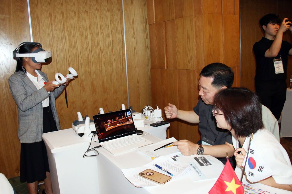 | Présentation par une entreprise sud-coréenne de son système de technologie de réalité virtuelle lors de l'événement. |