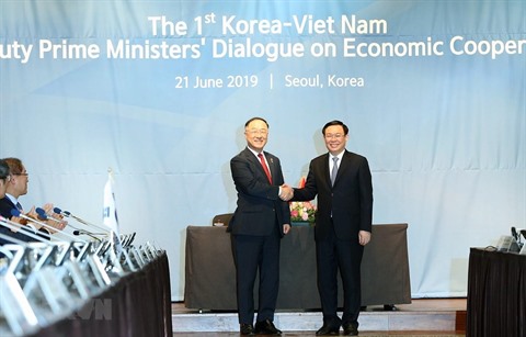 | Le vice-Premier ministre vietnamien Vuong Dinh Huê (droite) et son homologue sud-coréen Hong Nam-ki. |