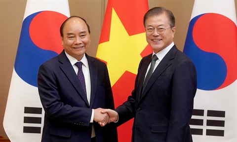 | Le 27 novembre 2019, le Premier ministre Nguyên Xuân Phuc (gauche) a rencontré le président sud-coréen Moon Jae-in. |