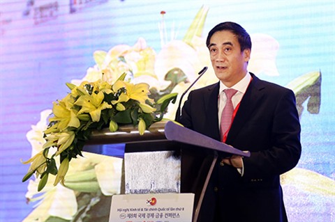 | Le vice-ministre des Finances, Trân Xuân Hà, prend la parole lors de la conférence. |