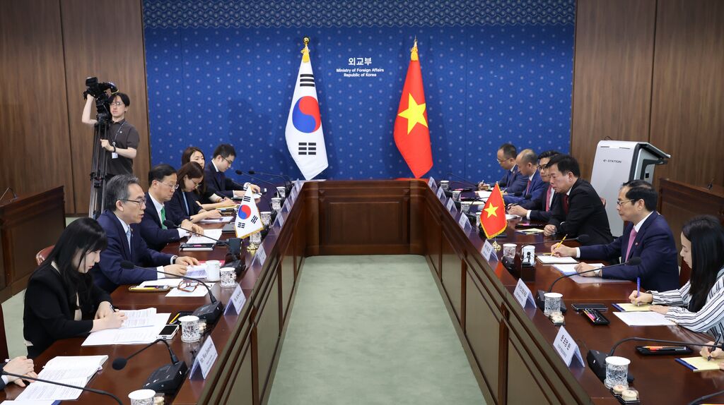 | Lors d'un entretien entre le ministre vietnamien des Affaires étrangères, Bùi Thanh Son (2e à droite) et son homologue sud-coréen Cho Tae-yeol (2e à gauche), le 31 mai. |
