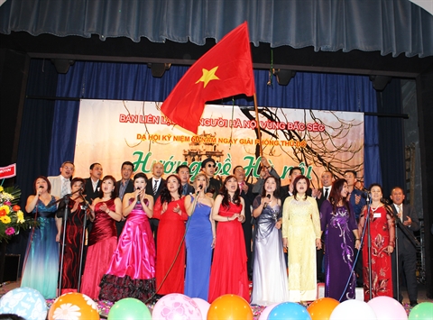 | Un numéro artistique de Vietnamiens vivant en R. tchèque, à l'occsion du 60e anniversaire de la Journée de libération de la capitale Hanoi (10 octobre 2014). |