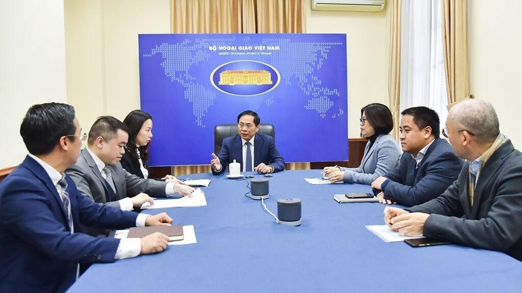 | Le ministre vietnamien des Affaires étrangères Bùi Thanh Son (centre), lors de la conversation téléphonique avec son homologue sud-coréen Cho Tae Yul, le 26 janvier. |