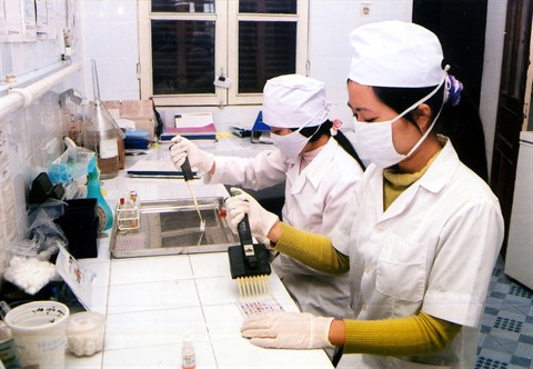 | Les techniciennes réalisent les tests de VIH/sida dans un laboratoire à Thanh Hoa (Centre). |