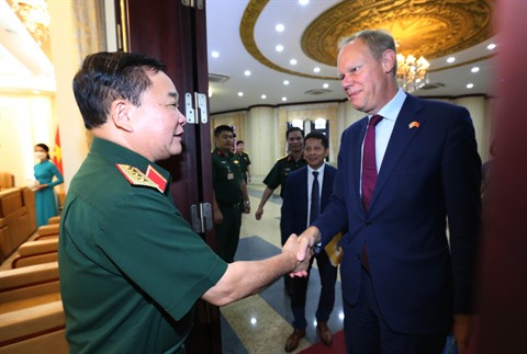 | Le général de corps d'armés Hoàng Xuân Chiên (gauche) et le secrétaire permanent du Home Office, |