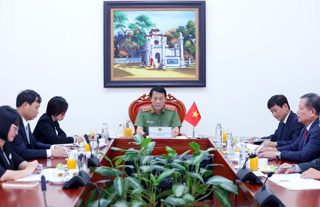 | Le ministre vietnamien de la Police, Luong Tam Quang, lors de l'entretien au téléphone avec la secrétaire d’État britannique à l’Intérieur, Yvette Cooper. |