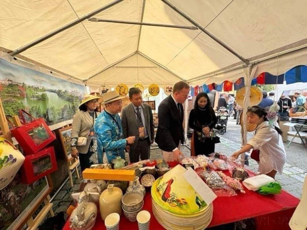 | Le président du conseil municipal de Stockholm, Olle Burell, visite le stand vietnamien à la Foire commerciale et culinaire de l'ASEAN 2024, qui s'est tenue à Stockholm (15 juin 2024). |