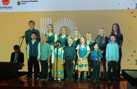 | Des enfants suèdois chantent lors de la célébration du 50e anniversaire des relations diplomatiques Vietnam - Suède, le 11 janvier à Hanoï. |