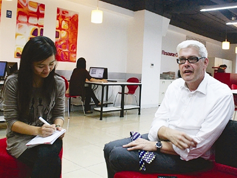 Les piétons de la rue Bà Triêu (Hanoi) aperçoivent parfois un étranger de grande taille aux cheveux blancs prendre un thé glacé sur le trottoir devant l'Université de Grande-Bretagne au Vietnam (BUV). Les étudiants le saluent comme il se doit, par un "Hello teacher !". Lui, c’est Christopher Jeffery, un Anglais que l’on l’appelle intimement Chris. "Quand je m'assieds ici, mes étudiants se sentent plus proches de moi. Je suis plus accessible pour eux", confie-t-il.