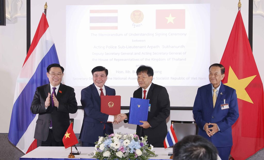 | Cérémonie de signature du protocole d'accord entre le bureau de l'AN du Vietnam et le Secrétariat de la Chambre des représentants thaïlandaise. |