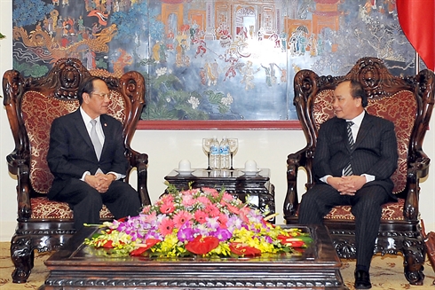 | Le vice-Premier ministre Nguyên Xuân Phuc (droite) reçoit, le 21 septembre à Hanoi, Panthep Klanarongran, chef de la Commission nationale anti-corruption de la Thaïlande. |