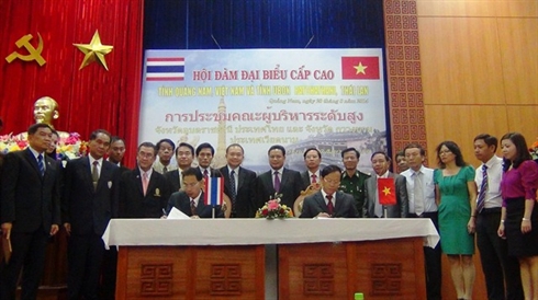 | Signature d'un mémorandum d’établissement des relations d’amitié et de coopération entre les provinces d'Ubon Ratchathani et de Quang Nam, le 20 août à Tam Ky (Quang Nam, Centre). |