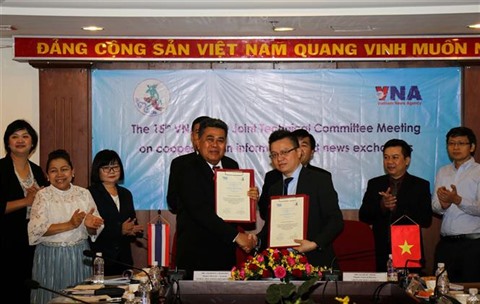 Après la réunion, Lê Quôc Minh et Charoon Chaisorn ont signé le procès-verbal de la réunion selon lequel, les deux parties ont convenu de la nécessité d'approfondir la coopération en matière d'information, notamment en réalisant des reportages approfondis sur les caractéristiques culturelles des deux pays et en développant l'échange des articles en anglais avec des photos faisant la promotion de la situation socio-économique et culturelle de chaque pays pour publication sur leurs sites Web.