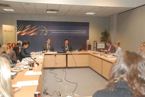 L’ambassadeur du Vietnam en Belgique et au Luxembourg, Pham Sanh Châu, et une cinquantaine de représentants des grandes entreprises américaines en UE ont participé comme Caterpillar, Procter&Gamble, GE, Microsoft, UPS, DOW Chemical, Amway.