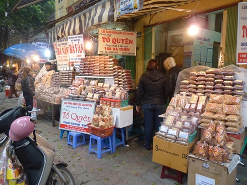 | Rue Bà Triêu, Hanoi, une dizaine de commerces de cacahuètes sont installés en corporation. |