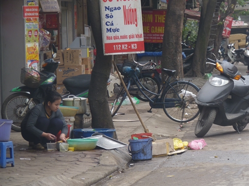 Dans un registre plus discret, il n’est pas rare de voir des Vietnamiens dormir dans la rue, le conducteur de xe ôm sur son moto-taxi, ou les vendeurs de rue – hommes ou femmes - sur leur matelas de fortune, attendant tous patiemment (ou non) qu’un client daigne les solliciter. De leur côté, les fonctionnaires font de même, mais sur le lieu de travail, la fameuse sieste pour digérer. Les exemples se bousculent. Les habitants laissent souvent leur maison grande ouverte sur la rue, laissant au passant le soin d’apercevoir ce qu’ils regardent à la télé, ou ce qu’ils mangent. Dans les restaurants «populaires», les femmes font la vaisselle directement sur le trottoir ; et les clients ne jettent pas leurs déchets dans le coin de leur assiette mais directement au sol.