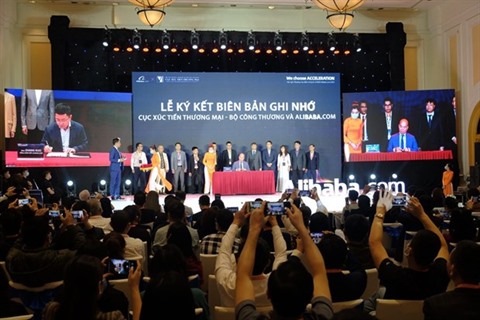 | Cérémonie de signature du protocole d'accord entre la Vietrade et Alibaba en mars dernier. |