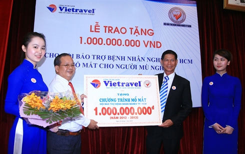 | Le voyagiste Vietravel a remis le 31 juillet à Hô Chi Minh-Ville un chèque d’un milliard de dôngs au représentant de l’Association municipale du patronage des malades pauvres |