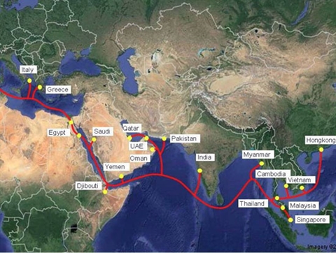 Le réseau AAE-1, d’une longueur de 23.000 km, relie l'Asie à l'Afrique et à l'Europe. Il représente un investissement total de 820 millions de dollars octroyés par 20 partenaires de 18 pays à travers le monde.