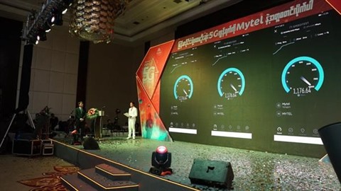 | Cérémonie de lancement de la technologie 5G de Mytel (marque de Viettel au Myanmar). |