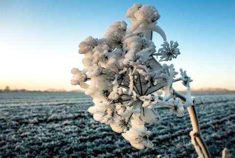 | La campagne givrée, au matin du 30 décembre 2016, près de Godewaersvelde, dans le Nord de la France. |