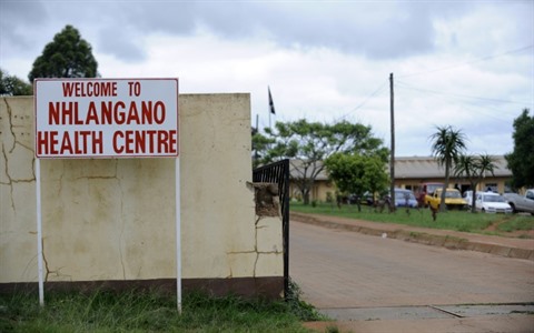 | L'entrée d'un centre de santé à Nhlangano, au Swaziland, pays le plus touché au monde par le virus du sida, avec un tiers de la population adulte infectée. |