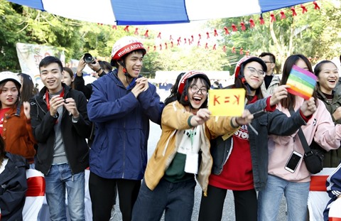 | Des étudiants de Hanoï participent à une campagne de prévention contre le VIH/sida. |