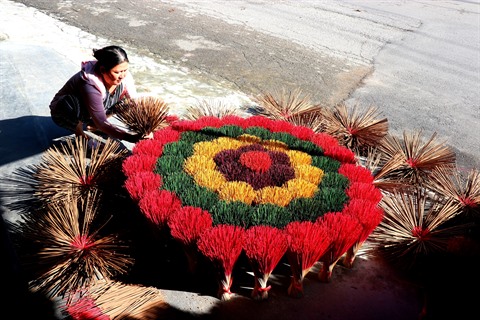 En se rendant au village d'encens de Thuy Xuân, la première image qui frappe est celle de bouquets de "fleurs" d’encens se répandant avec ses couleurs vives.