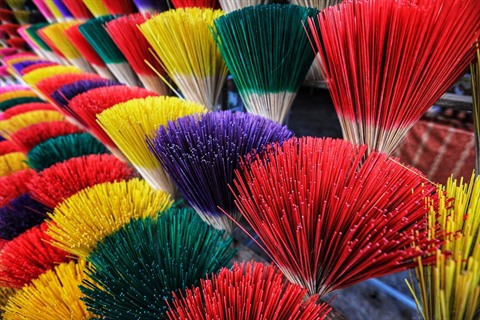 | Les bouquets colorés d'encens séduisent les touristes. |