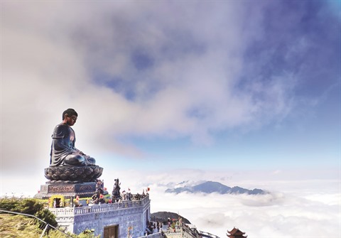 | Une grande statue du Bouddha Amitabha entièrement en bronze au Vietnam. |