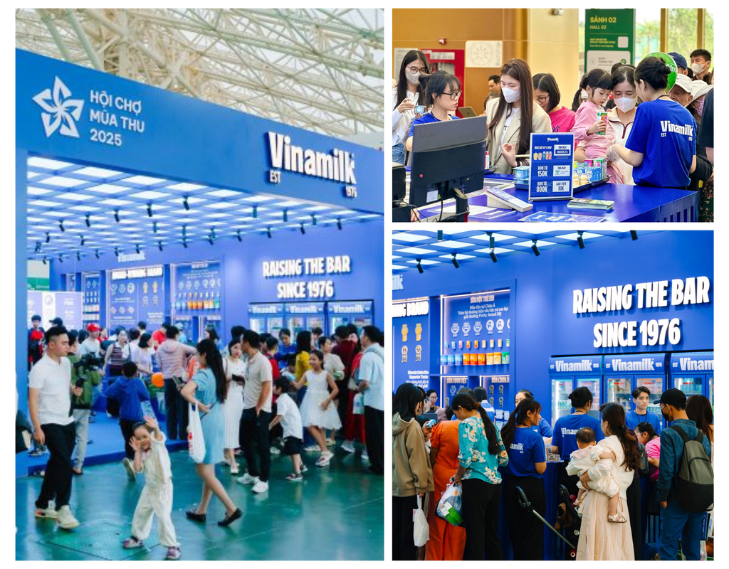 | Le stand Vinamilk, véritable point de mire, attire les consommateurs à la Foire d'automne 2025. |