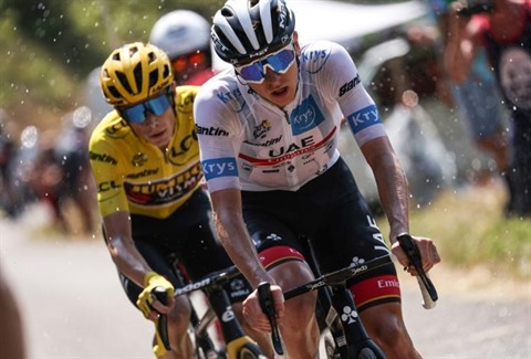 Pogacar, un filet de sang sur la cuisse gauche, est resté ensuite le plus souvent dans le sillage de Vingegaard. Dans la montée finale, longue de 13,6 kilomètres à 7,8 % de pente moyenne, il a tenu le rythme avant de céder à 4,4 kilomètres de la ligne et perdre un peu plus d'une minute sur son rival.