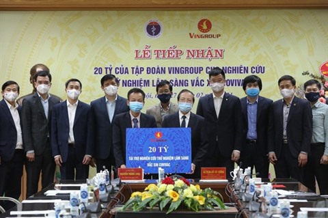 | La cérémonie de réception de 20 milliards de dôngs de Vingroup au service des essais cliniques du vaccin COVIVAC. |