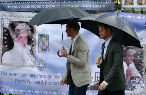 L'un des bouquets avait été déposé la veille, pour le compte d'un des nombreux admirateurs présents, par le fils cadet de Diana, le prince Harry, 32 ans, venu avec son frère William voir les hommages rendus à leur mère. Ils avaient auparavant, avec Kate, la femme de William, visité sous une pluie battante et dans l'intimité le jardin éphémère de fleurs blanches créé à sa mémoire au palais de Kensington.