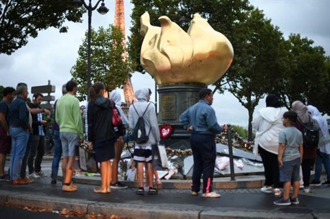 Sur les chaînes qui entourent le petit monument, réplique de la flamme de la Statue de la Liberté de New York, des centaines de cadenas ont été accrochés en signe de souvenir tandis que plusieurs dizaines de bouquets de fleurs et de photographies de la princesse entouraient la flamme.