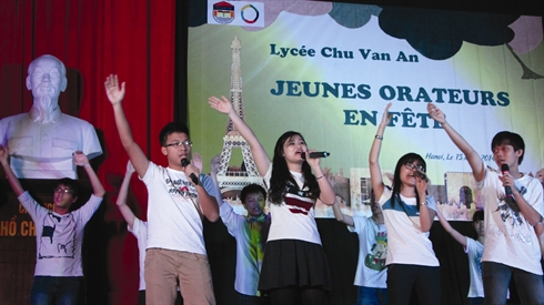 | Pour fêter la Semaine de la Francophonie en 2014, les enseignants et élèves du Lycée bilingue francophone Chu Van An ont organisé le 15 mars dernier des spectacles. |