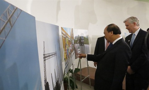 | Le Premier ministre Nguyên Xuân Phuc (gauche) et le directeur national de la BAD au Vietnam, Eric Sidgwick, lors de l'exposition photographique sur les projets de partenariat Vietnam-BAD organisée le 2 décembre à Hanoï. |